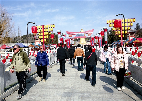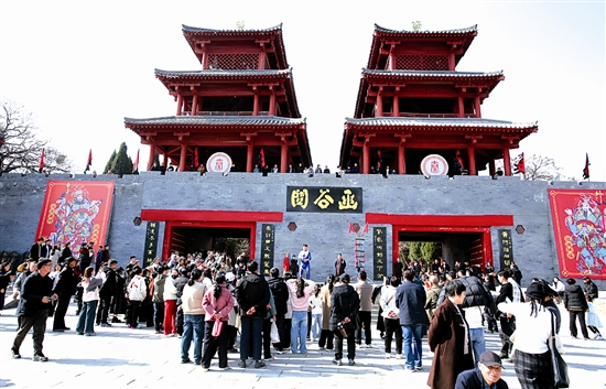 春節(jié)假期,靈寶市函谷關景區(qū)裝扮一新,從早上9點到晚上8點雙獅賀歲、道情皮影、雜技等節(jié)目輪番上演,全國各地游客盡享濃濃年味兒。本報記者 何英杰 攝