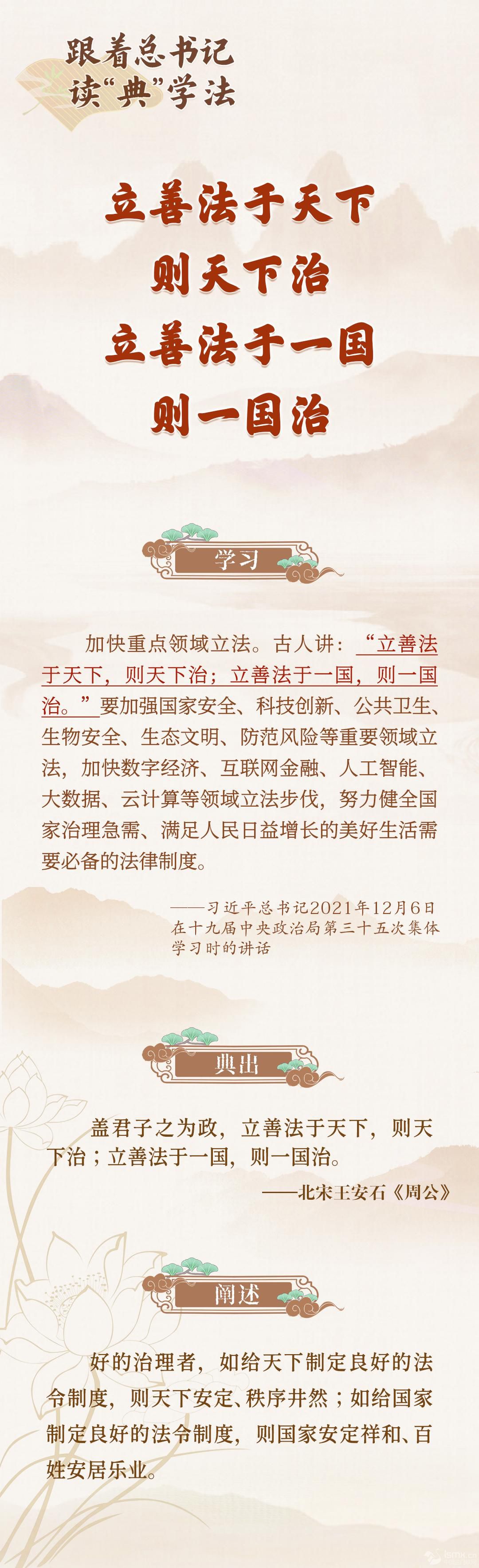 【編者按】 “源浚者流長,根深者葉茂。”中華優(yōu)秀傳統(tǒng)法律文化,承載著千年治國理政的智慧結(jié)晶,為當(dāng)代中國法治建設(shè)注入深厚的文化底蘊(yùn)。習(xí)近平總書記在多次講話中運(yùn)用法治典故析法明理,推動中華優(yōu)秀傳統(tǒng)法律文化實(shí)現(xiàn)創(chuàng)造性轉(zhuǎn)化、創(chuàng)新性發(fā)展,使其由歷史典籍中的法理智慧,發(fā)展成順應(yīng)時代所需的治國理念。 2025年全國“憲法宣傳周”,法治網(wǎng)《跟著總書記讀“典”學(xué)法》欄目,誠邀您一同品讀《習(xí)近平法治文選》第一卷中的法治典故,照鑒古今智慧,汲取思想偉力,共赴法治新程。