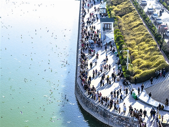 本報記者 葛洋 春節(jié)假期,三門峽天鵝湖國家城市濕地公園游人如織。 杜杰 攝 天鵝湖日均接待游客近10萬人次,函谷關(guān)景區(qū)游客峰值突破5萬人次……這個春節(jié),三門峽文旅市場以一連串亮眼數(shù)據(jù),交出了一份熱度拉滿的“開門紅”答卷,為2026年文旅強市建設(shè)奏響了氣勢磅礴的“開門紅”樂章,成為全國文旅版圖中當(dāng)之無愧的一大亮點。 熱度爆棚,盛況空前。主力景區(qū)“馬力全開”,爆款項目一票難求。大年初一清晨,天鵝湖景區(qū)的停車場車位便已告急,上千個車位一位難求;函谷關(guān)景區(qū)內(nèi)游客摩肩接踵,來自晉陜豫周邊的游客沉浸式體驗古廟會風(fēng)情;陜州地坑院燈火璀璨,特色小吃攤位前排起長隊,升騰的煙火氣里,滿是新春的熱鬧與歡騰。 整個春節(jié)期間,這份火熱始終不減。作為全國“我們的節(jié)日·春節(jié)”主題文化活動和河南省“春滿中原·老家河南”主會場活動的雙重主陣地,三門峽以陜州地坑院燈會啟動儀式為牽引,串聯(lián)起文博研學(xué)、非遺體驗、黃河風(fēng)情等多元業(yè)態(tài),讓千年古城的文化魅力持續(xù)釋放。 這份熱度背后,是黃河明珠的文旅實力,更是一座城市的誠意擔(dān)當(dāng)。市民主動讓景、服務(wù)細(xì)致暖心,八方來客在山水與文脈間,讀懂了三門峽的溫度,更記住了這座城市的溫情。 白天鵝與紅嘴鷗為證:從“稀客”到“常客”的生態(tài)蝶變 這個春節(jié),三門峽的“頂流”非白天鵝莫屬。 農(nóng)歷正月初二,天鵝湖國家城市濕地公園水面之上,成群的紅嘴鷗振翅盤旋,與白天鵝、紅頭潛鴨共同組成一幅“鷗鷺翔集、水天一色”的畫卷。去年11月以來,來此越冬的紅嘴鷗數(shù)量已突破5000只,創(chuàng)下歷史新高。它們不僅用翅膀為當(dāng)?shù)厣鷳B(tài)投下“信任票”,更帶來了新春觀鳥熱潮。 “入冬以來,濕地人氣越來越旺,不少游客專程前來,就為了一睹這群‘遠(yuǎn)方精靈’的風(fēng)采。”景區(qū)游船負(fù)責(zé)人趙江介紹。為保障游客觀鳥體驗,景區(qū)建起了可儲存30噸小魚干的冷庫,游船航班增至每日12班次,并隨客流靈活增開。其中特意安排的“夕陽班次”尤受歡迎,游客可乘船追逐落日,在金色波光中與鷗鷺共舞。 來自西安的張敏帶著上小學(xué)三年級的兒子專程前來,她激動地說:“孩子伸手就能觸碰到紅嘴鷗,這種人與自然的親近,是在城市里很難體會到的。” “天鵝擇良地而棲。”這片濕地的天鵝從20世紀(jì)90年代的幾十只,慢慢增至如今的1.6萬余只。黃河濕地的野生鳥類,也從20年前的175種,增至如今的300多種。天鵝棲息地由原來的2處增加到10處,覆蓋范圍100多平方公里。為了守護天鵝,三門峽規(guī)定每年10月15日至次年3月15日為白天鵝越冬保護期,并將每年11月22日定為“白天鵝保護日”。 隨著天氣逐漸回暖,一年一度的天鵝北遷已經(jīng)分批次開始。春節(jié)期間,天鵝湖畔游人如織,市民和游客爭相與這些白色精靈合影留念。天鵝對這片土地的“戀戀不舍”,正是三門峽好生態(tài)、好環(huán)境的最好證明。 年味滿崤函:70余場活動燃爆馬年新春 如果說白天鵝是大自然的饋贈,那么璀璨燈火便是三門峽人對遠(yuǎn)客的盛情。 2月10日晚(農(nóng)歷臘月廿三),萬千燈火在陜州地坑院次第點亮,2026年全國“我們的節(jié)日·春節(jié)”主題文化活動暨河南省“春滿中原·老家河南”主會場活動正式啟動,第九屆陜州燈會正式亮燈。這場由中宣部文明實踐局、文化和旅游部非物質(zhì)文化遺產(chǎn)司等多部門主辦的高規(guī)格活動,讓地坑院的璀璨燈火承載起整個豫西的年味。 本屆陜州燈會以“花燈閃耀黃河岸,地坑院里非遺年”為主題,圍繞華夏文明、非遺年俗、喜慶國潮等元素,巧妙融合聲光電現(xiàn)代科技,為游客打造別具一格的“燈會盛宴”。地坑院內(nèi)流光溢彩,璀璨與古樸相融,年味與詩意撲面而來。2月17日(農(nóng)歷正月初一),中央廣播電視總臺綜藝頻道《我們的節(jié)日·春節(jié)》欄目對此進行專題報道,讓陜州燈會火爆出圈。春節(jié)期間,陜州地坑院累計接待游客24.35萬人次,旅游綜合收入達906萬元,同比分別增長44.94%和78.7%。 同步啟動的“第三屆中國黃河非遺大集”,匯聚沿黃九省區(qū)的百余項非遺代表性項目。納鞋底、剪紙、面塑等活態(tài)展演讓老手藝“開口說話”;捶草印花、陜州澄泥硯等互動工坊讓游客親手觸摸歷史。在非遺文創(chuàng)年味區(qū),捶草印花技藝省級非遺代表性傳承人朱秀云拿著一把榔頭、幾片葉子,把春天和馬年的祝福,直接“捶”進了布里:“今年是馬年,我制作了一個‘馬’元素的產(chǎn)品,這個叫‘馬上平安’,一邊是馬,一邊是葫蘆,也祝大家馬年快樂。”而在“百種小吃”市集,陜州十碗席、靈寶羊肉湯等熱氣騰騰,讓游客在“逛吃”中品味黃河人家的生活滋味。 在靈寶函谷關(guān)歷史文化旅游區(qū),新春大廟會同樣“馬”力十足。六大主題劇目輪番登場,《祭老儀式》《玄宗祭祖》《楚漢爭關(guān)》復(fù)刻千年盛景,《雞鳴狗盜》《詩賦桃林》煥新登場。道情皮影敘古事,雜耍絕技燃全場,比舞招親、魔術(shù)氣球等特色演藝輪番上演。領(lǐng)一份通關(guān)文牒,偶遇國風(fēng)NPC,參與“餅里函金”溫情獻禮,游客們在沉浸式體驗中解鎖廟會的多重歡