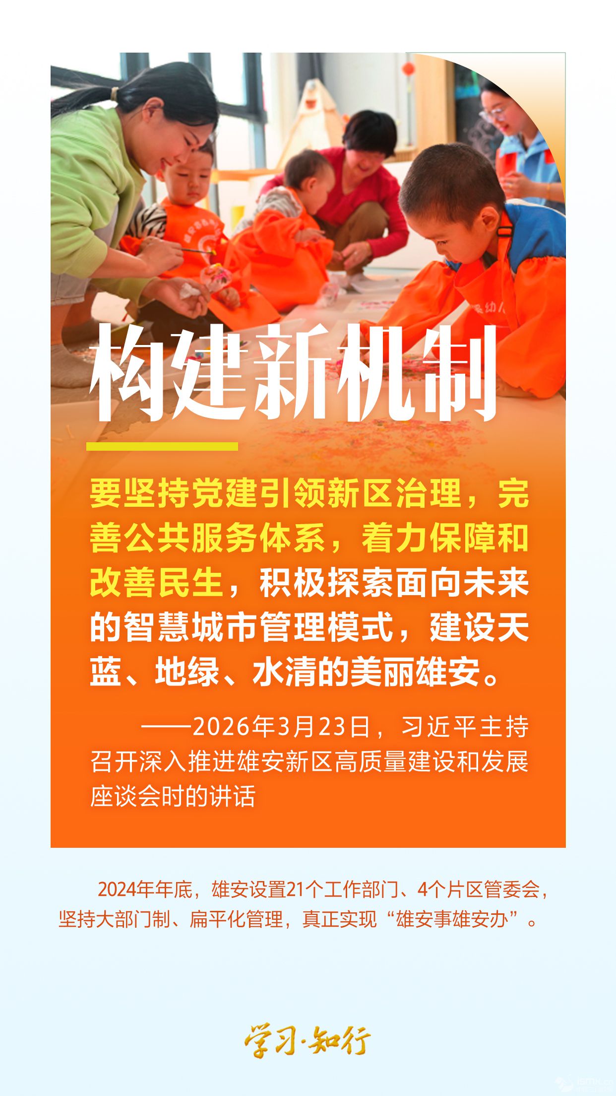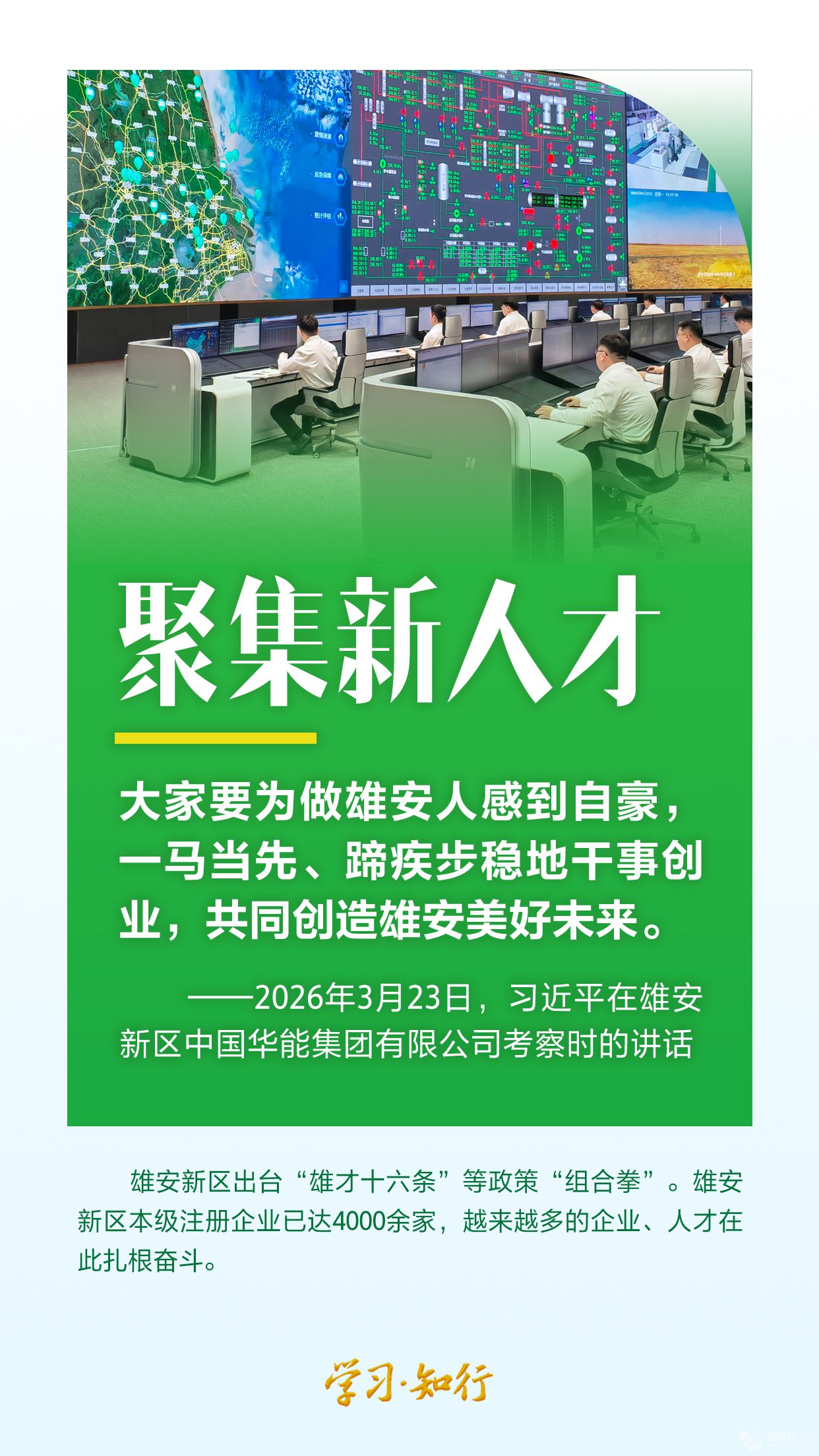 2026年3月23日,習(xí)近平總書記在河北雄安新區(qū)考察,主持召開深入推進(jìn)雄安新區(qū)高質(zhì)量建設(shè)和發(fā)展座談會(huì),強(qiáng)調(diào)牢牢把握雄安新區(qū)功能定位,努力建設(shè)新時(shí)代創(chuàng)新高地和推動(dòng)高質(zhì)量發(fā)展樣板。 千年大計(jì),只爭(zhēng)朝夕。如今的雄安新區(qū),正以看得見的“新”,錨定目標(biāo),闊步前行。