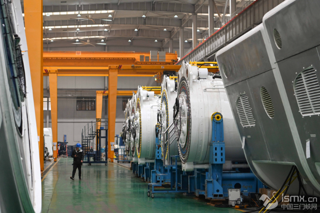 河南明陽(yáng)新能源裝備產(chǎn)業(yè)園內(nèi)正在組裝的風(fēng)機(jī)(劉宏冰 攝) 河南明陽(yáng)新能源裝備產(chǎn)業(yè)園的風(fēng)機(jī)車間正在組裝一個(gè)個(gè)“龐然大物”。廠長(zhǎng)尹權(quán)指著一臺(tái)陸上7.5兆瓦風(fēng)機(jī)發(fā)電機(jī)組介紹:“在滿發(fā)風(fēng)速下,一年可發(fā)電2800多萬(wàn)千瓦時(shí),每年可節(jié)約9800噸標(biāo)準(zhǔn)煤,減少二氧化碳排放2.5萬(wàn)噸。” 作為中國(guó)500強(qiáng)和新能源裝備全球領(lǐng)軍企業(yè),明陽(yáng)集團(tuán)與信陽(yáng)達(dá)成全面戰(zhàn)略合作,推動(dòng)豫東南高新區(qū)綠色能源裝備制造產(chǎn)業(yè)園、固始縣再生資源循環(huán)經(jīng)濟(jì)產(chǎn)業(yè)園等項(xiàng)目落地。“我們將發(fā)揮‘鏈主’效應(yīng),在信陽(yáng)打造千億級(jí)新能源高端裝備產(chǎn)業(yè)集群,讓新能源產(chǎn)業(yè)新質(zhì)生產(chǎn)力在老區(qū)煥發(fā)蓬勃生機(jī)。”明陽(yáng)集團(tuán)中部大區(qū)董事長(zhǎng)劉學(xué)武信心滿滿。