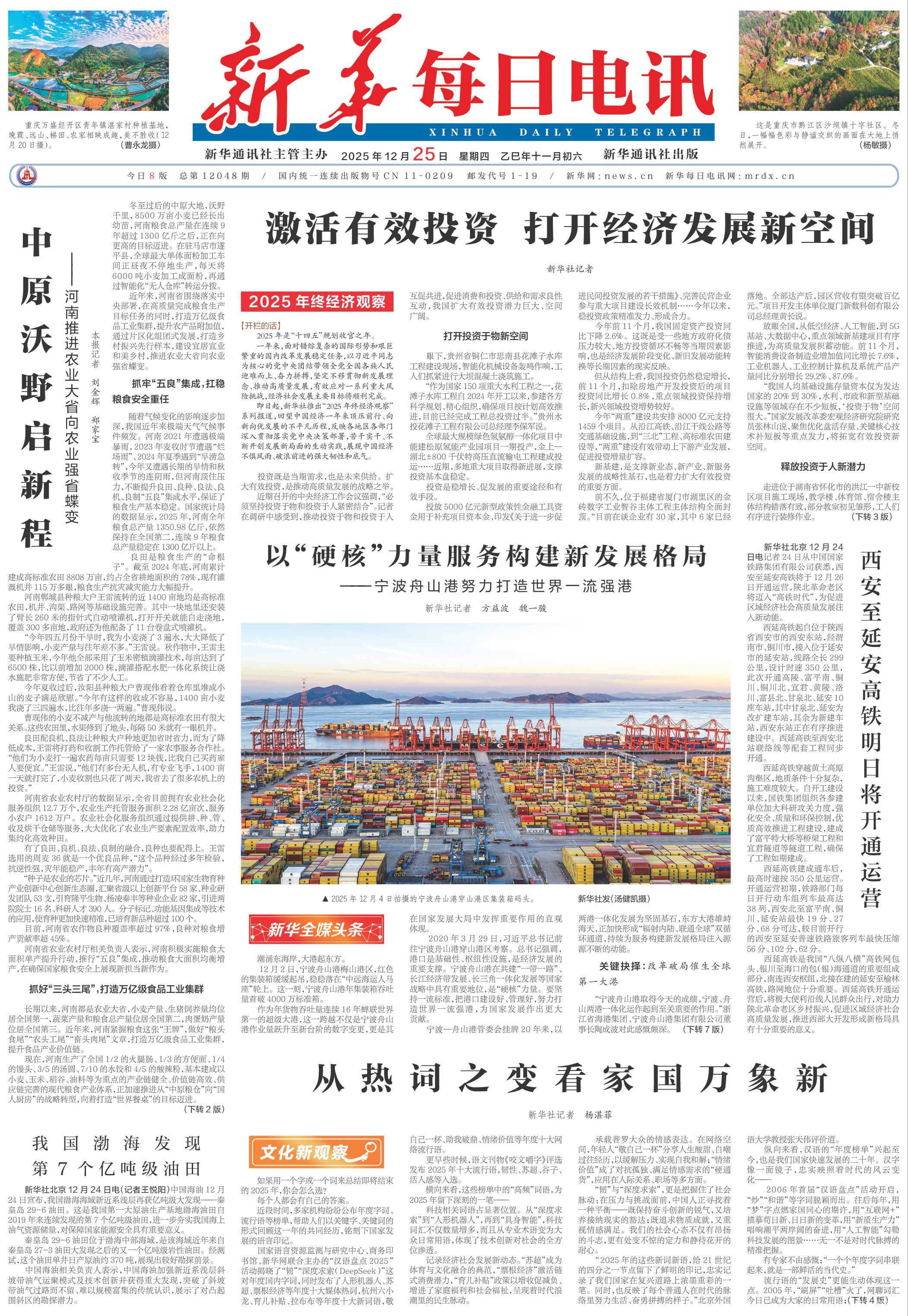 本報(bào)記者 劉金輝 鄭家寶 冬至過后的中原大地,沃野千里,8500萬(wàn)畝小麥已經(jīng)長(zhǎng)出幼苗,河南糧食總產(chǎn)量在連續(xù)9年超過1300億斤之后,正在向更高的目標(biāo)邁進(jìn)。在駐馬店市遂平縣,全球最大單體面粉加工車間正晝夜不停地生產(chǎn),每天將6000噸小麥加工成面粉,再通過智能化“無人倉(cāng)庫(kù)”轉(zhuǎn)運(yùn)分撥。 近年來,河南省圍繞落實(shí)中央部署,在高質(zhì)量完成糧食生產(chǎn)目標(biāo)任務(wù)的同時(shí),打造萬(wàn)億級(jí)食品工業(yè)集群,提升農(nóng)產(chǎn)品附加值,通過片區(qū)化組團(tuán)式發(fā)展,打造鄉(xiāng)村振興先行樣本,建設(shè)宜居宜業(yè)和美鄉(xiāng)村,推進(jìn)農(nóng)業(yè)大省向農(nóng)業(yè)強(qiáng)省蝶變。 抓牢“五良”集成,扛穩(wěn)糧食安全重任 隨著氣候變化的影響逐步加深,我國(guó)近年來極端天氣氣候事件頻發(fā)。河南2021年遭遇極端暴雨,2023年麥?zhǔn)諘r(shí)節(jié)遭遇“爛場(chǎng)雨”、2024年夏季遇到“旱澇急轉(zhuǎn)”,今年又遭遇長(zhǎng)期的旱情和秋收季節(jié)的連陰雨,但河南頂住壓力,不斷提升良田、良種、良法、良機(jī)、良制“五良”集成水平,保證了糧食生產(chǎn)基本穩(wěn)定。國(guó)家統(tǒng)計(jì)局的數(shù)據(jù)顯示,2025年,河南全年糧食總產(chǎn)量1350.98億斤,依然保持在全國(guó)第二,連續(xù)9年糧食總產(chǎn)量穩(wěn)定在1300億斤以上。 良田是糧食生產(chǎn)的“命根子”。截至2024年底,河南累計(jì)建成高標(biāo)準(zhǔn)農(nóng)田8808萬(wàn)畝,約占全省耕地面積的78%,現(xiàn)有灌溉機(jī)井115萬(wàn)多眼,糧食生產(chǎn)抗災(zāi)減災(zāi)能力大幅提升。 河南鄲城縣種糧大戶王雷流轉(zhuǎn)的近1400畝地均是高標(biāo)準(zhǔn)農(nóng)田,機(jī)井、溝渠、路網(wǎng)等基礎(chǔ)設(shè)施完善。其中一塊地里還安裝了臂長(zhǎng)260米的指針式自動(dòng)噴灌機(jī),打開開關(guān)就能自走澆地,覆蓋300多畝地,政府還為他配備了11臺(tái)卷盤式噴灌機(jī)。 “今年四五月份干旱時(shí),我為小麥澆了3遍水,大大降低了旱情影響,小麥產(chǎn)量與往年差不多。”王雷說。秋作物中,王雷主要種植玉米,今年他全部采用了玉米密植滴灌技術(shù),每畝達(dá)到了6500株,比以前增加2000株,滴灌搭配水肥一體化系統(tǒng)讓澆水施肥非常方便,節(jié)省了不少人工。 今年夏收過后,汝陽(yáng)縣種糧大戶曹現(xiàn)偉看著倉(cāng)庫(kù)里堆成小山的麥子滿是欣慰。“今年有這樣的收成不容易,1400畝小麥我澆了三四遍水,比往年多澆一兩遍。”曹現(xiàn)偉說。 曹現(xiàn)偉的小麥不減產(chǎn)與他流轉(zhuǎn)的地都是高標(biāo)準(zhǔn)農(nóng)田有很大關(guān)系。這些農(nóng)田里,水渠修到了地頭,每隔50米就有一眼機(jī)井。 良田配良機(jī)、良法讓種糧大戶種地更加省時(shí)省力,而為了降低成本,王雷將打藥和收割工作托管給了一家農(nóng)事服務(wù)合作社。“他們?yōu)樾←湸蛞槐檗r(nóng)藥每畝只需要12塊錢,比我自己買藥雇人要便宜。”王雷說,“他們有多臺(tái)無人機(jī),有專業(yè)飛手,1400畝一天就打完了,小麥?zhǔn)崭钜仓换藘商,我省去了很多農(nóng)機(jī)上的投資。” 河南省農(nóng)業(yè)農(nóng)村廳的數(shù)據(jù)顯示,全省目前擁有農(nóng)業(yè)社會(huì)化服務(wù)組織12.7萬(wàn)個(gè),農(nóng)業(yè)生產(chǎn)托管服務(wù)面積2.28億畝次,服務(wù)小農(nóng)戶1612萬(wàn)戶。農(nóng)業(yè)社會(huì)化服務(wù)組織通過提供耕、種、管、收及烘干倉(cāng)儲(chǔ)等服務(wù),大大優(yōu)化了農(nóng)業(yè)生產(chǎn)要素配置效率,助力集約化高效種田。 有了良田、良機(jī)、良法、良制的融合,良種也要配得上。王雷選用的周麥36就是一個(gè)優(yōu)良品種,“這個(gè)品種經(jīng)過多年檢驗(yàn),抗逆性強(qiáng),災(zāi)年能穩(wěn)產(chǎn),豐年有高產(chǎn)潛力”。 “種子是農(nóng)業(yè)的芯片。”近幾年,河南通過打造環(huán)國(guó)家生物育種產(chǎn)業(yè)創(chuàng)新中心創(chuàng)新生態(tài)圈,匯聚省級(jí)以上創(chuàng)新平臺(tái)58家、種業(yè)研發(fā)團(tuán)隊(duì)53支,引育隆平生物、楊凌秦豐等種業(yè)企業(yè)82家,引進(jìn)兩院院士16名、科研人才390人。分子標(biāo)記、功能基因集成等技術(shù)的應(yīng)用,使育種更加快速精準(zhǔn),已培育新品種超過100個(gè)。 目前,河南省農(nóng)作物良種覆蓋率超過97%,良種對(duì)糧食增產(chǎn)貢獻(xiàn)率超45%。 河南省農(nóng)業(yè)農(nóng)村廳相關(guān)負(fù)責(zé)人表示,河南積極實(shí)施糧食大面積單產(chǎn)提升行動(dòng),推行“五良”集成,推動(dòng)糧食大面積均衡增產(chǎn),在確保國(guó)家糧食安全上展現(xiàn)新?lián)?dāng)新作為。 抓好“三頭三尾”,打造萬(wàn)億級(jí)食品工業(yè)集群 長(zhǎng)期以來,河南都是農(nóng)業(yè)大省,小麥產(chǎn)量、生豬飼養(yǎng)量均位居全國(guó)第一,蔬菜產(chǎn)量和糧食總產(chǎn)量位居全國(guó)第二,肉蛋奶產(chǎn)量位居全國(guó)第三。近年來,河南緊握糧食這張“王牌”,做好“糧頭食尾”“農(nóng)頭工尾”“畜頭肉尾”文章,打造萬(wàn)億級(jí)食品工業(yè)集群,提升食品產(chǎn)業(yè)價(jià)值鏈。 現(xiàn)在,河南生產(chǎn)了全國(guó)1/2的